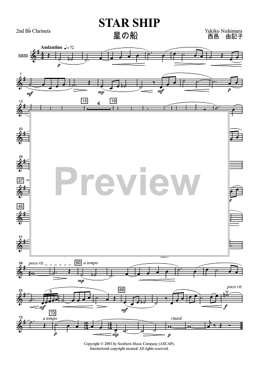Digital Sheet Music for Star Ship - Bb Clarinet 2 by Yukiko Nishimura scored for Concert Band; id:503631