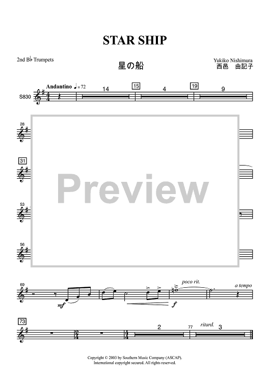 Digital Sheet Music for Star Ship - Bb Trumpet 2 by Yukiko Nishimura scored for Concert Band; id:503641