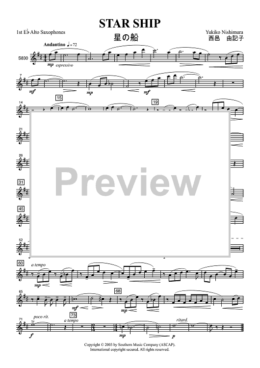 Digital Sheet Music for Star Ship - Eb Alto Sax 1 by Yukiko Nishimura scored for Concert Band; id:503636