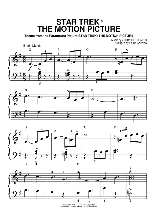 Digital Sheet Music for Star Trek(R) The Motion Picture by Jerry Goldsmith, Phillip Keveren scored for Big Note Piano; id:382258
