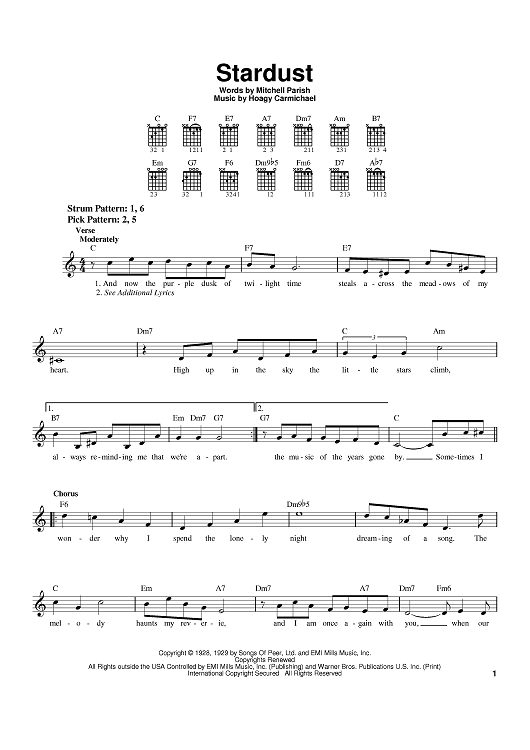 Digital Sheet Music for Stardust by Mitchell Parish, Hoagy Carmichael, Artie Shaw scored for Easy Guitar; id:369740