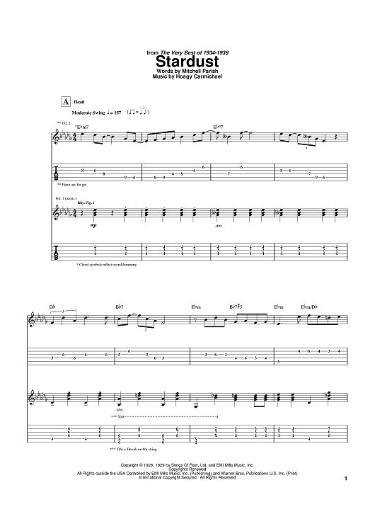 Digital Sheet Music for Stardust by Mitchell Parish, Django Reinhardt, Hoagy Carmichael, Artie Shaw scored for Guitar Tab; id:370279