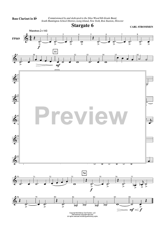 Digital Sheet Music for Stargate 6 - Bass Clarinet in B-flat by Carl Strommen scored for Concert Band; id:409178