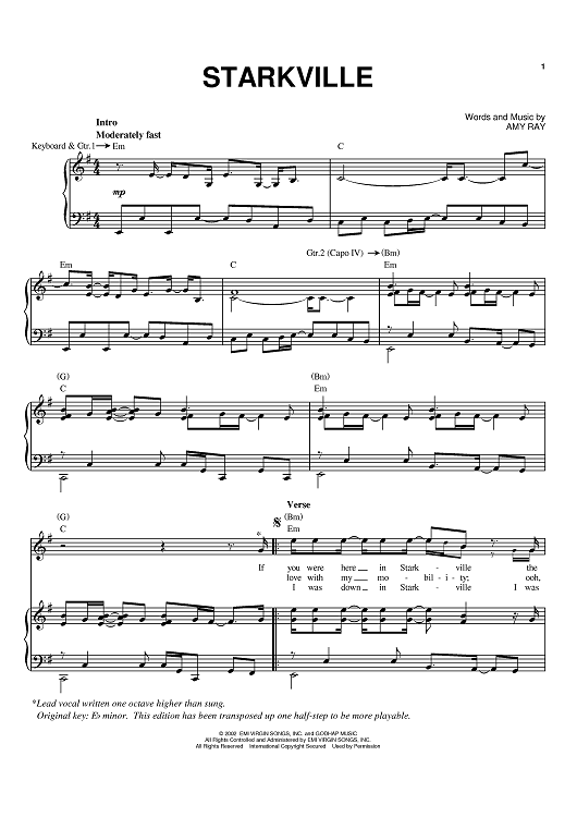 Digital Sheet Music for Starkville by Indigo Girls, Amy Ray scored for Piano/Vocal/Chords; id:370379