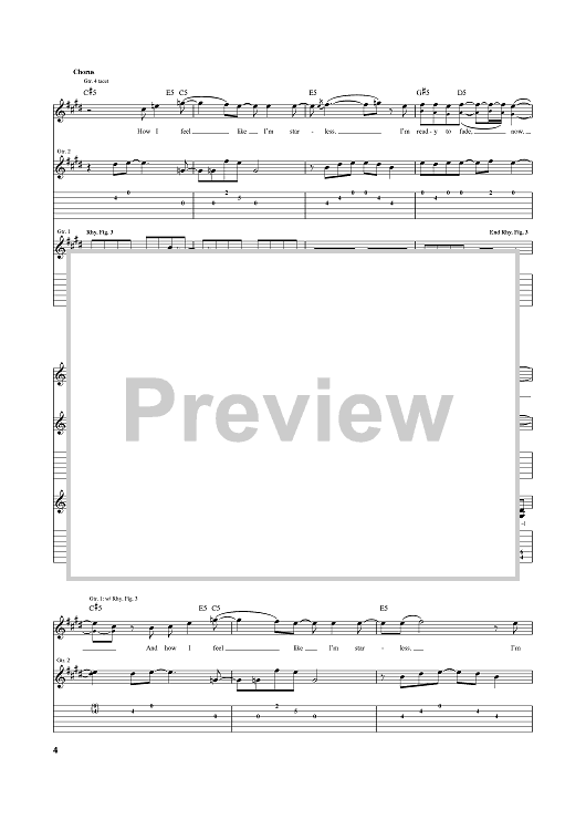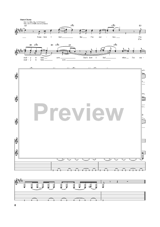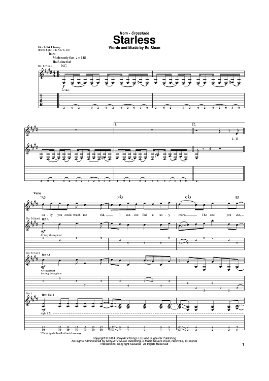 Digital Sheet Music for Starless by Crossfade, Ed Sloan scored for Guitar Tab; id:384275