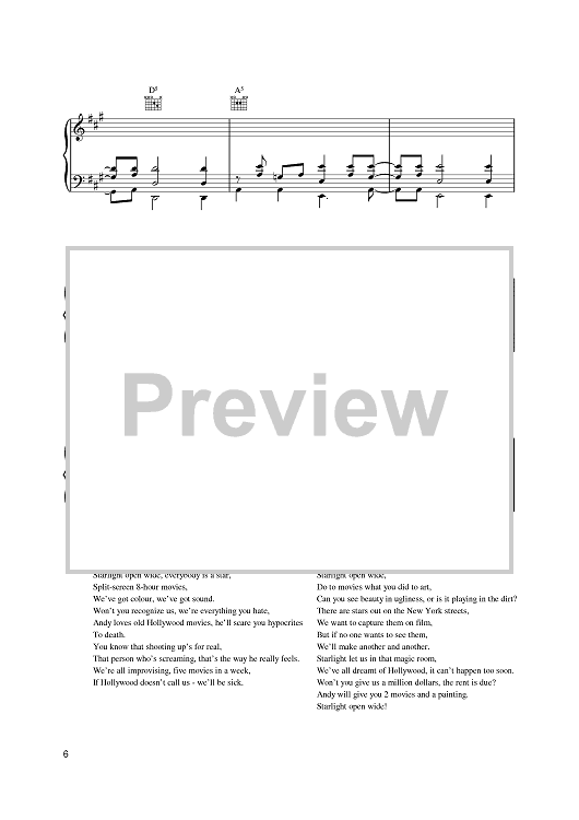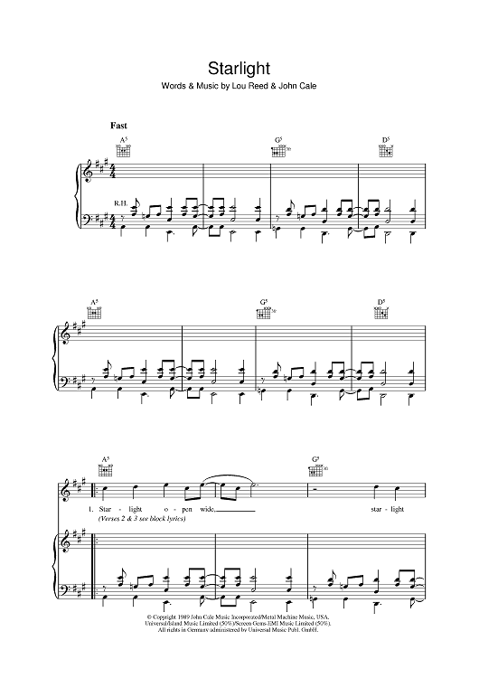 Digital Sheet Music for Starlight by John Cale, Lou Reed scored for Piano/Vocal/Chords; id:401194