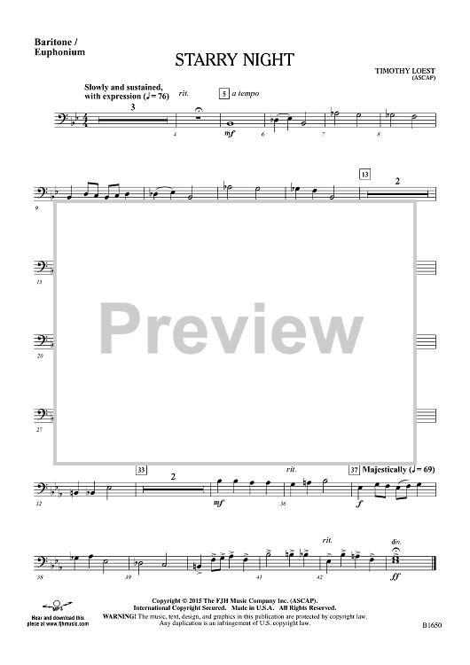 Digital Sheet Music for Starry Night - Baritone/Euphonium by Timothy Loest scored for Concert Band; id:455410