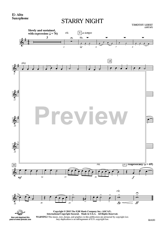 Digital Sheet Music for Starry Night - Eb Alto Sax by Timothy Loest scored for Concert Band; id:455403