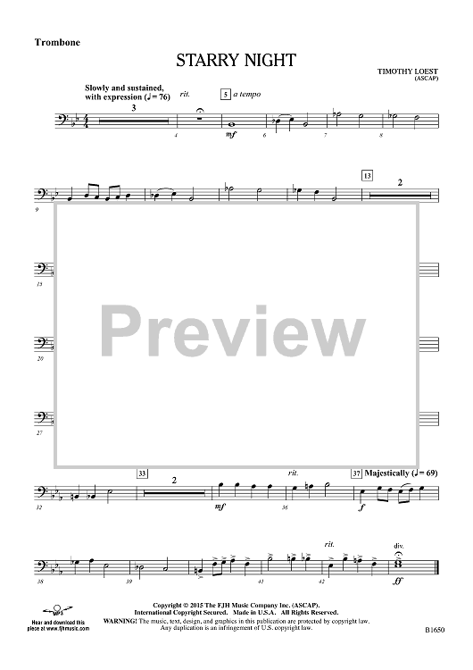 Digital Sheet Music for Starry Night - Trombone by Timothy Loest scored for Concert Band; id:455409