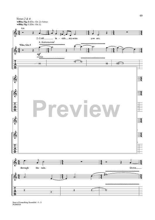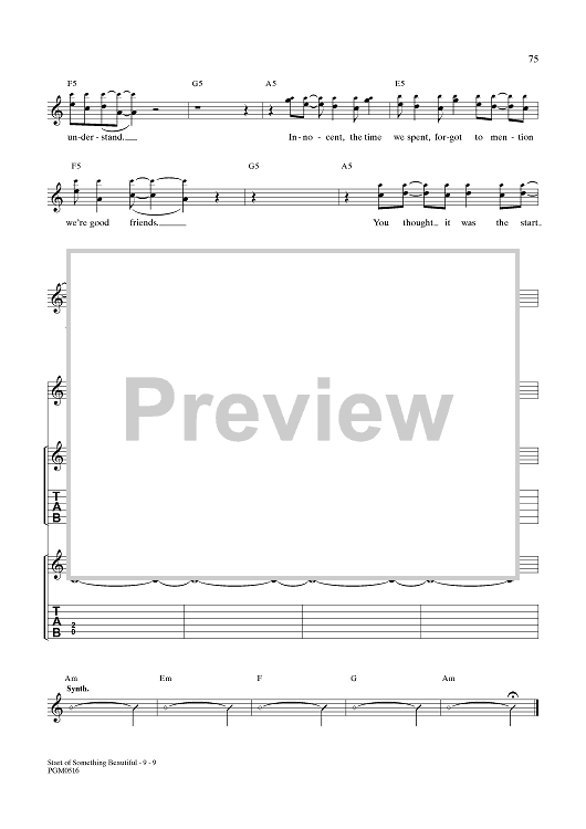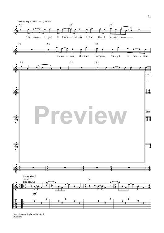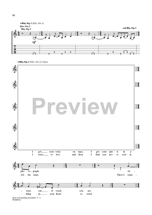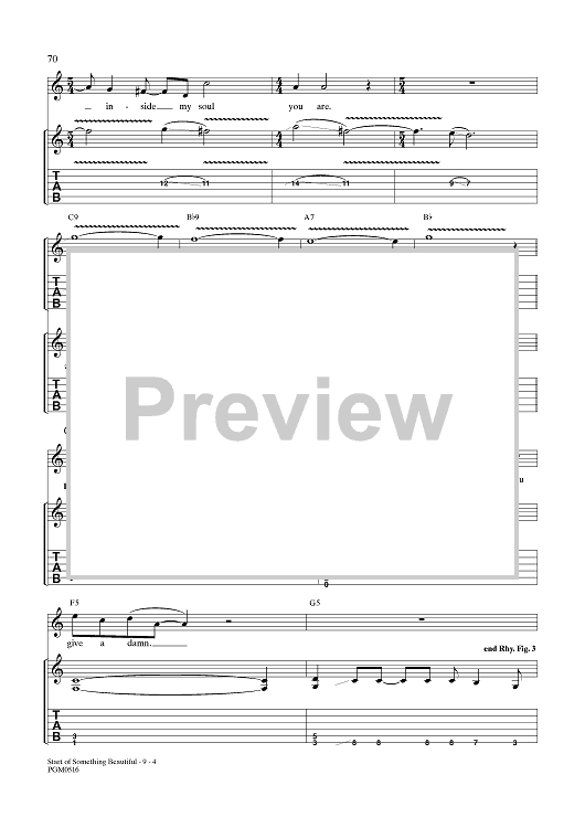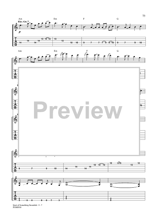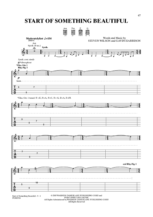 Digital Sheet Music for Start of Something Beautiful by Porcupine Tree, Steven Wilson, Gavin Harrison scored for Guitar Tab/Vocal; id:360028