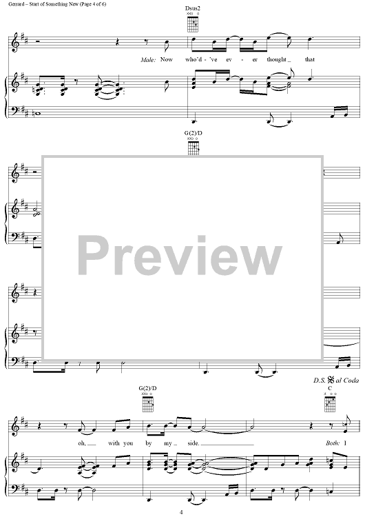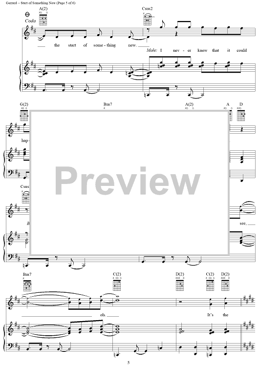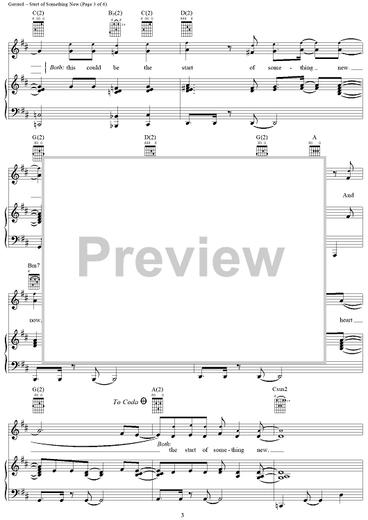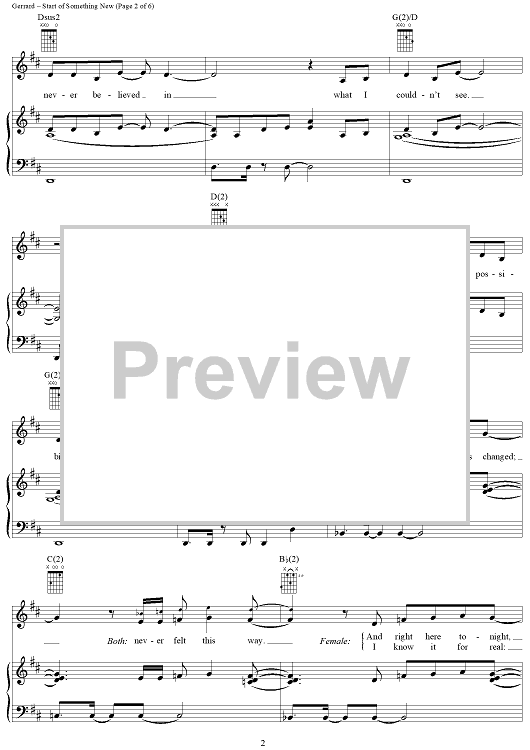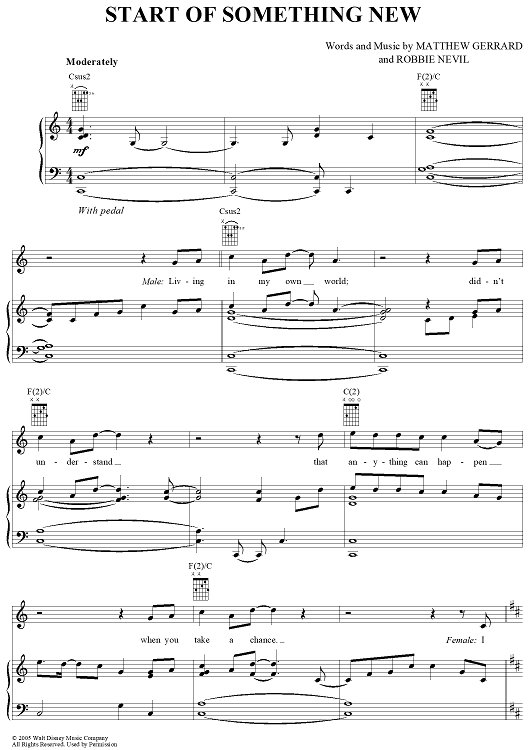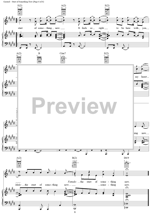 Digital Sheet Music for Start of Something New (Duet) by Matthew Gerrard, Robbie Nevil scored for Piano/Vocal/Chords; id:366853