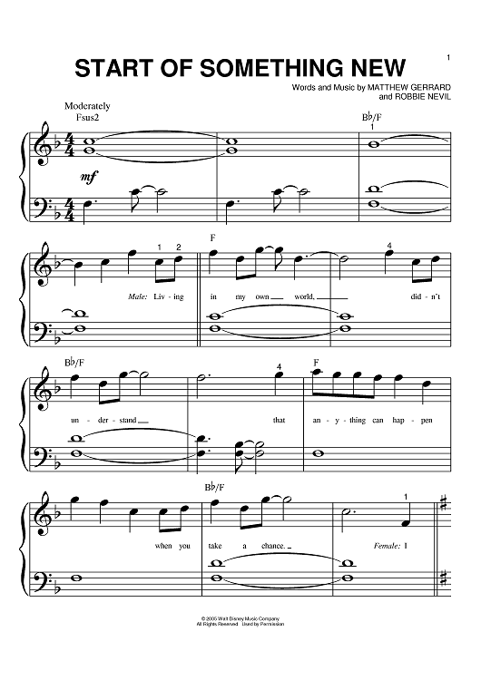 "Start Of Something New" Sheet Music by Matthew Gerrard
