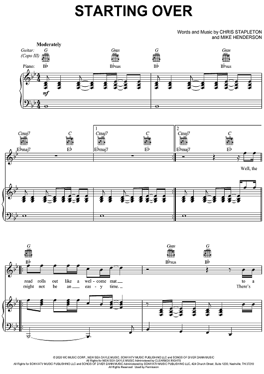 Digital Sheet Music for Starting Over by Chris Stapleton, Mike Henderson scored for Piano/Vocal/Chords; id:468524