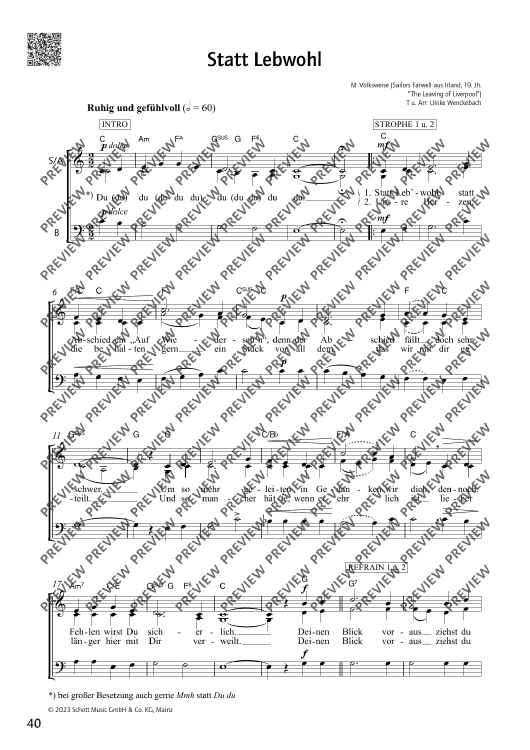Digital Sheet Music for Statt Lebwohl by Ulrike Wenckebach scored for School Choir, Mixed Choir (sab); id:500576