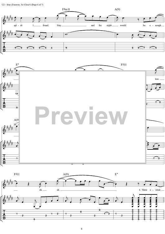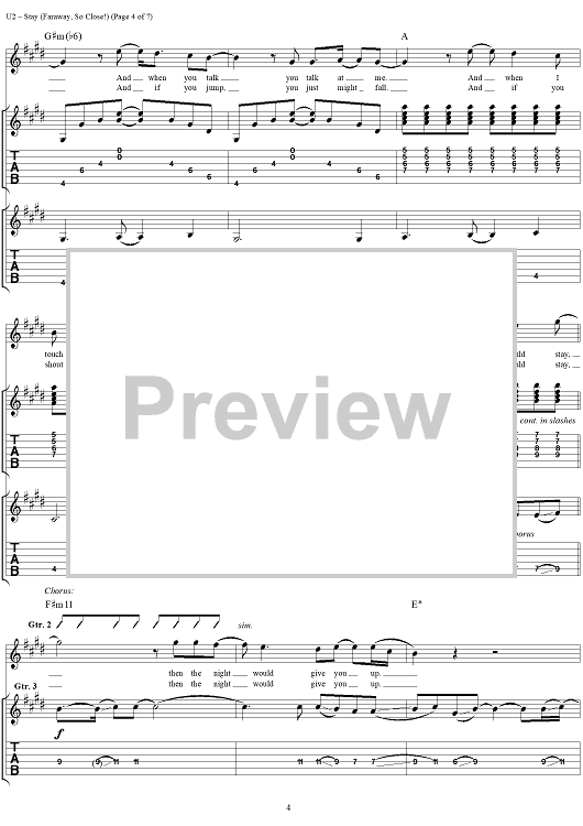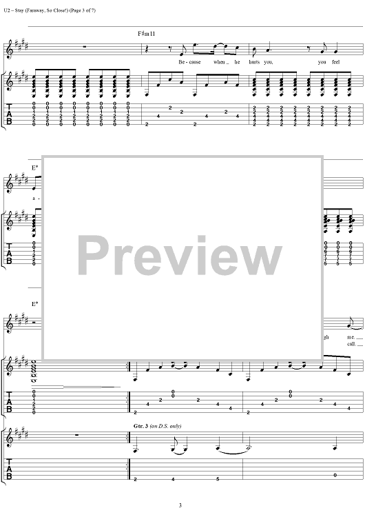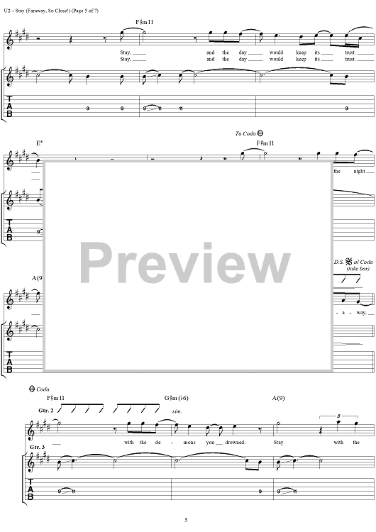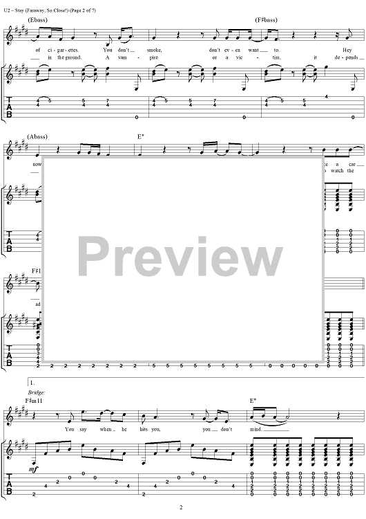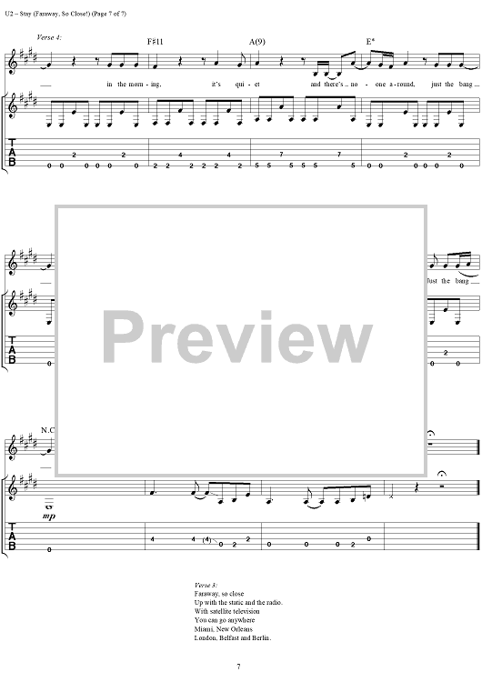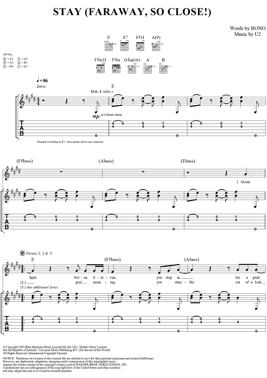 Digital Sheet Music for Stay (Faraway, So Close!) by U2, Bono scored for Guitar Tab/Vocal; id:296467