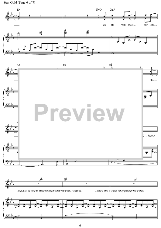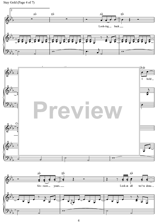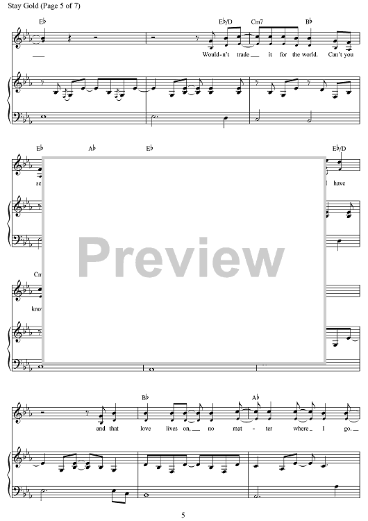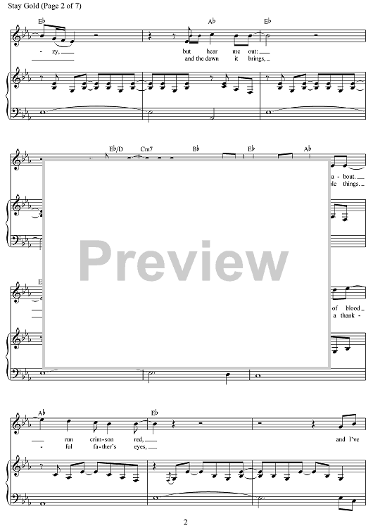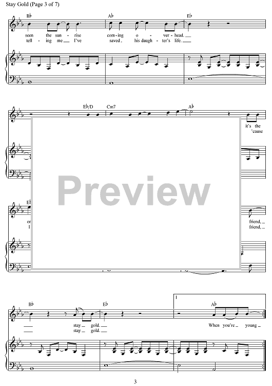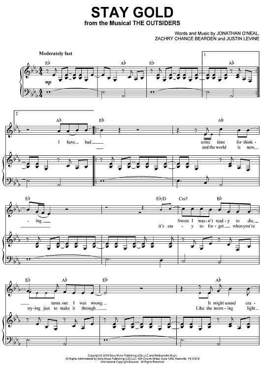 Digital Sheet Music for Stay Gold by Jonathan O'Neal, Zachry Chance Bearden, Justin Levine scored for Piano/Vocal/Chords; id:503383