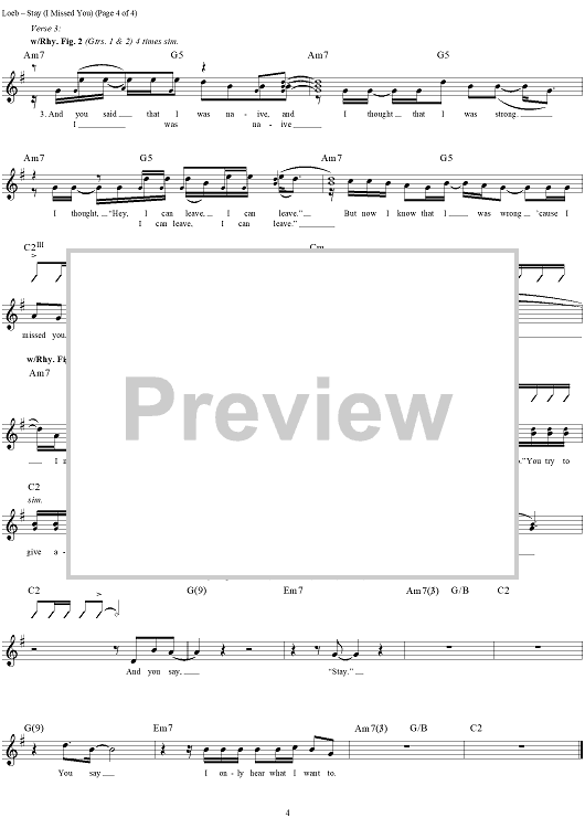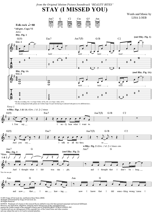 "Stay (I Missed You)" Sheet Music by Lisa Loeb