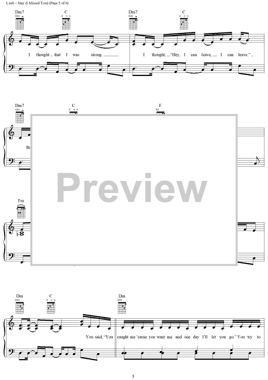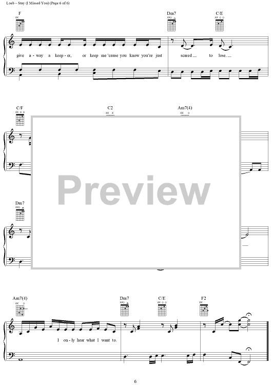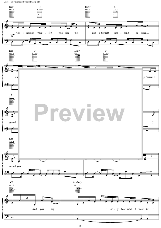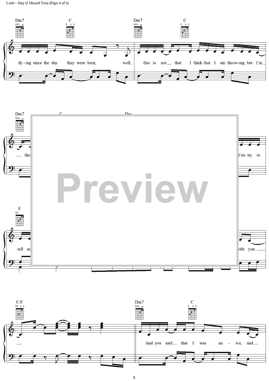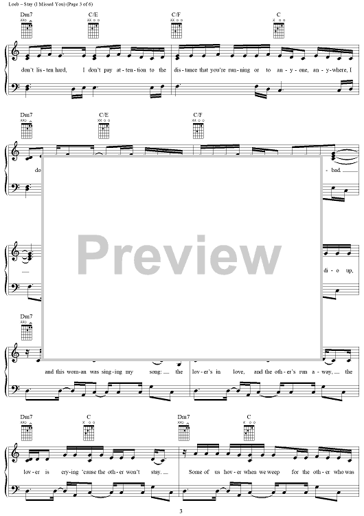Digital Sheet Music for Stay (I Missed You) by Lisa Loeb scored for Piano/Vocal/Chords; id:289506