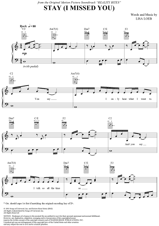 "Stay (I Missed You)" Sheet Music by Lisa Loeb