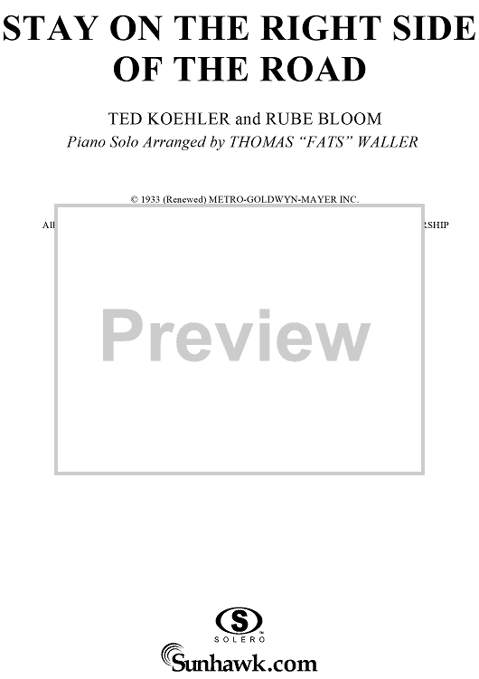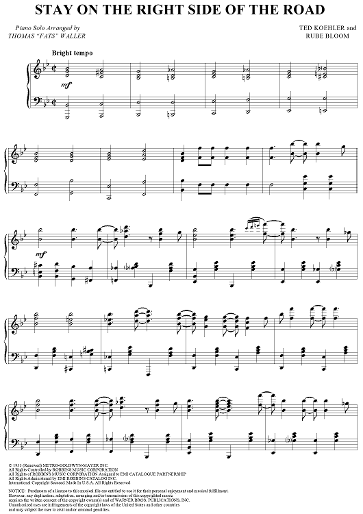 Digital Sheet Music for Stay on the Right Side of the Road by Ted Koehler, Fats Waller, Rube Bloom scored for Piano Solo; id:116367