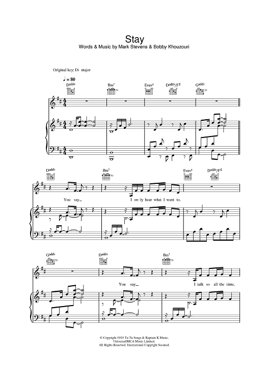 Digital Sheet Music for Stay by Lisa Loeb, Bobby Khouzouri, Mark Stevens scored for Piano/Vocal/Chords; id:388377