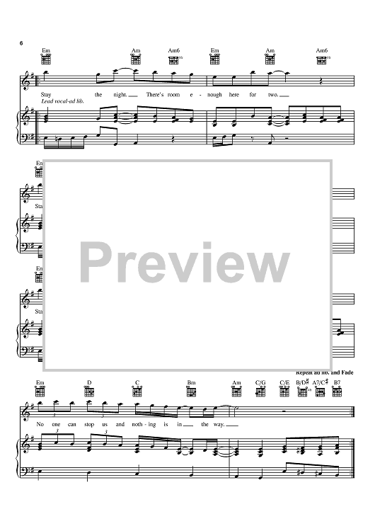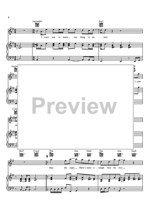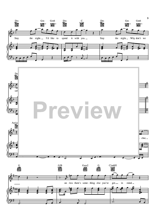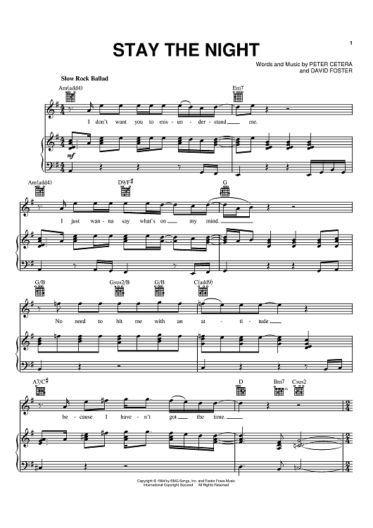 Digital Sheet Music for Stay The Night by Peter Cetera, Chicago, David Foster scored for Piano/Vocal/Chords; id:368334