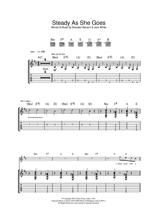 Digital Sheet Music for Steady, As She Goes by Brendan Benson, The Raconteurs, Jack White scored for Guitar Tab; id:394097