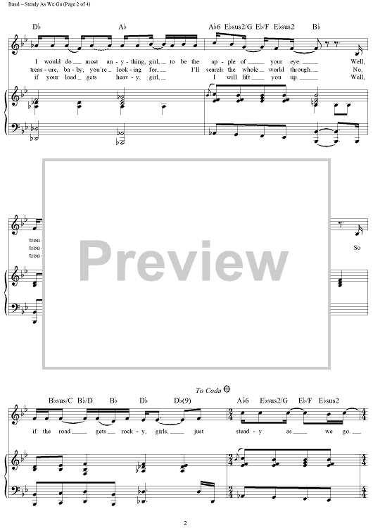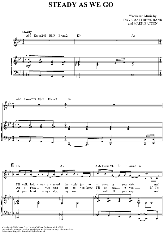 Digital Sheet Music for Steady As We Go by Dave Matthews Band, Dave Matthews, Mark Batson scored for Piano/Vocal/Chords; id:452295