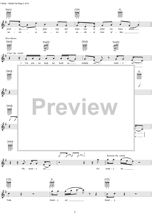 Digital Sheet Music for Steady On by , Shawn Colvin, John Leventhal scored for Lead Sheet; id:235390