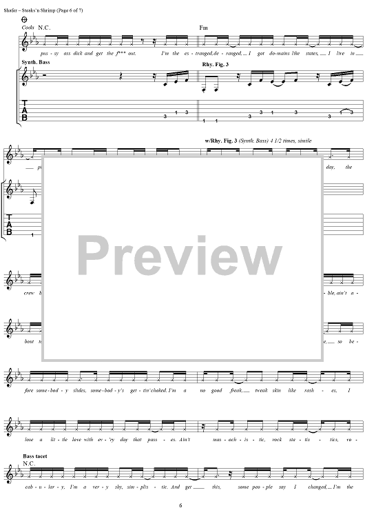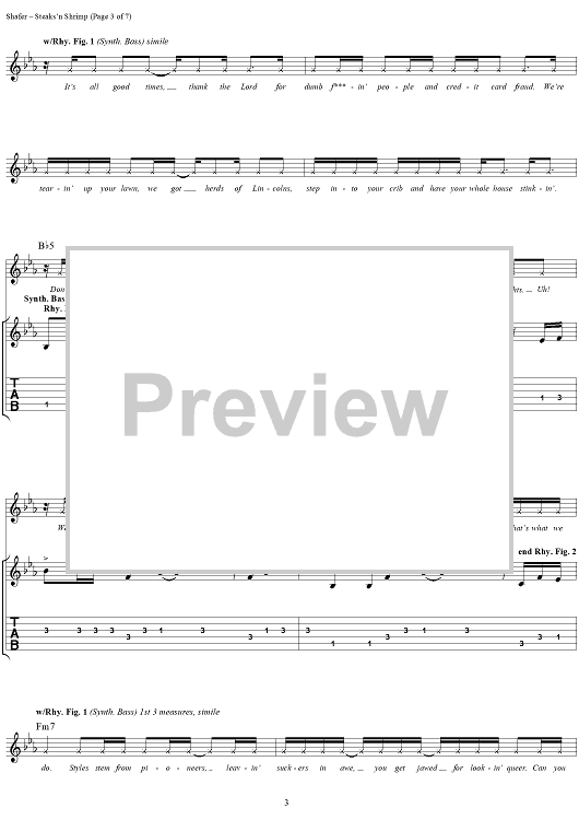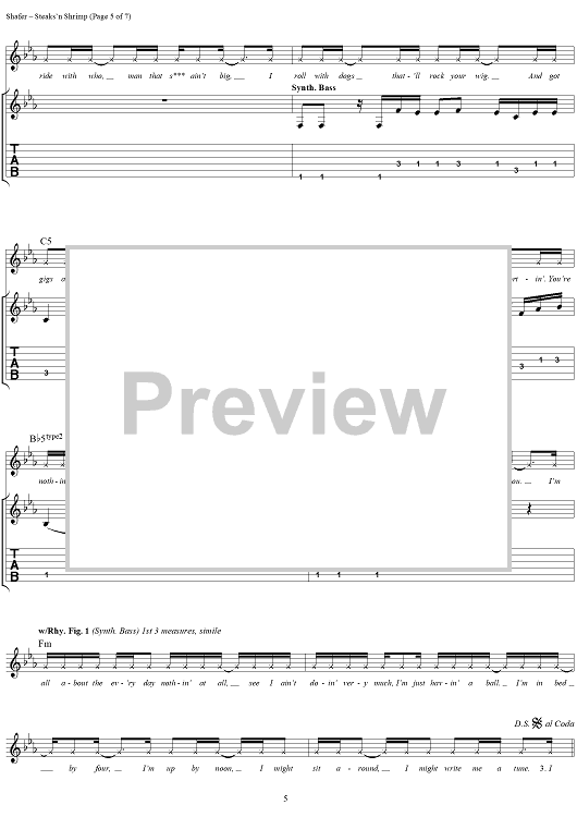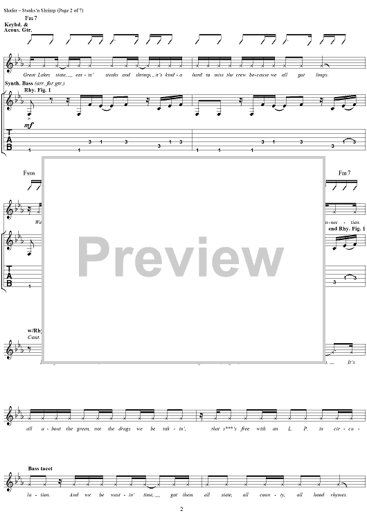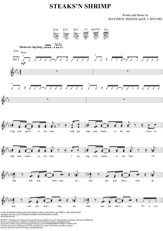 Digital Sheet Music for Steaks 'N Shrimp by Matthew Shafer, Uncle Kracker, R. J. Ritchie scored for Guitar Tab/Vocal; id:285771