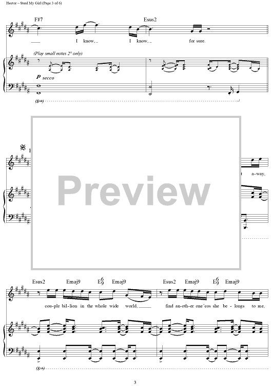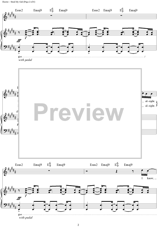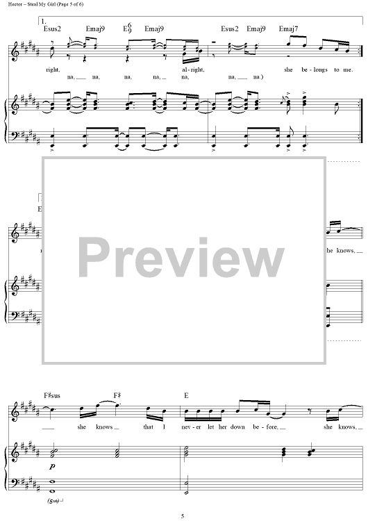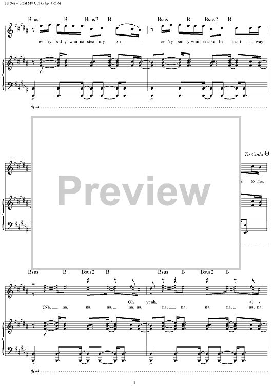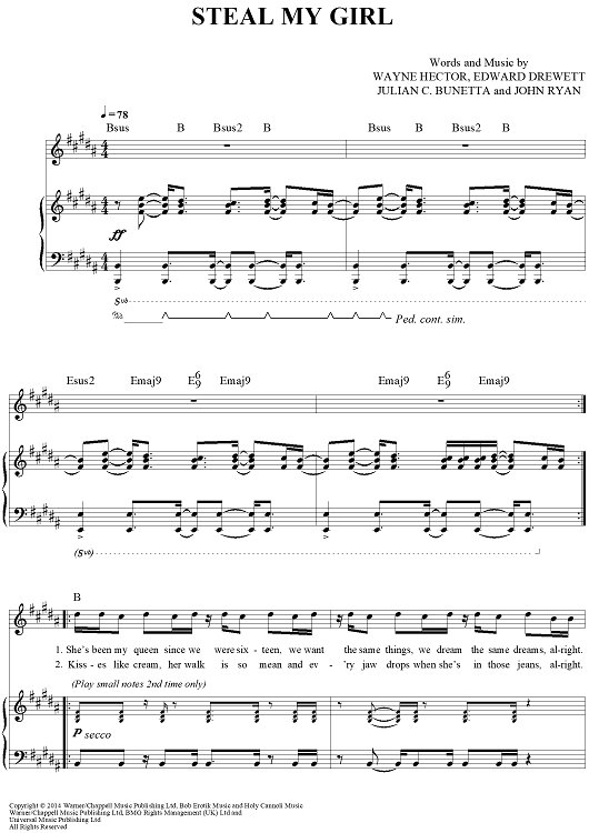 Digital Sheet Music for Steal My Girl by Wayne Hector, Ed Drewett, One Direction, Julian Bunetta, John Ryan scored for Piano/Vocal/Chords; id:444431