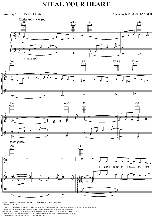 Digital Sheet Music for Steal Your Heart by Gloria Estefan, Kike Santander scored for Piano/Vocal/Chords; id:233568