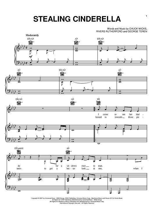 Digital Sheet Music for Stealing Cinderella by George Teren, Rivers Rutherford, Chuck Wicks scored for Piano/Vocal/Chords; id:402878