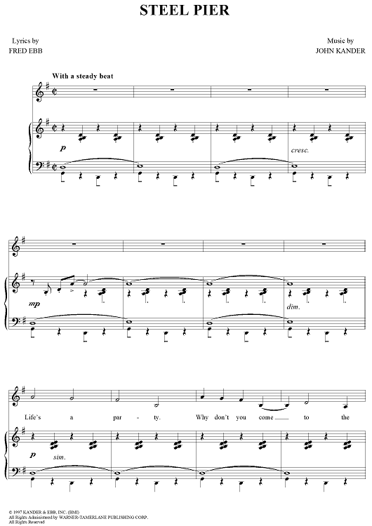 Digital Sheet Music for Steel Pier by John Kander, Fred Ebb scored for Piano/Vocal; id:311566