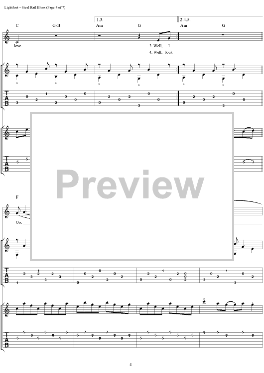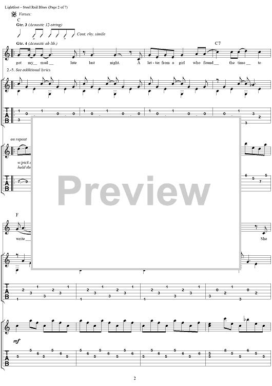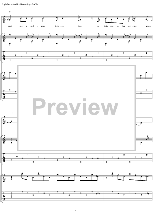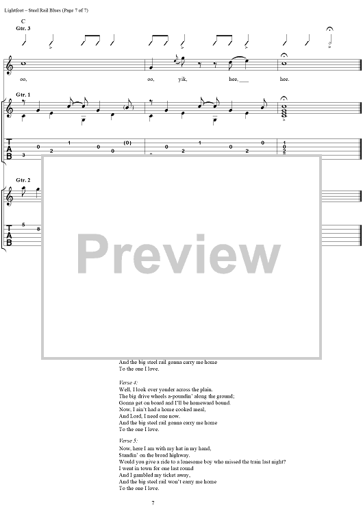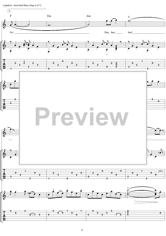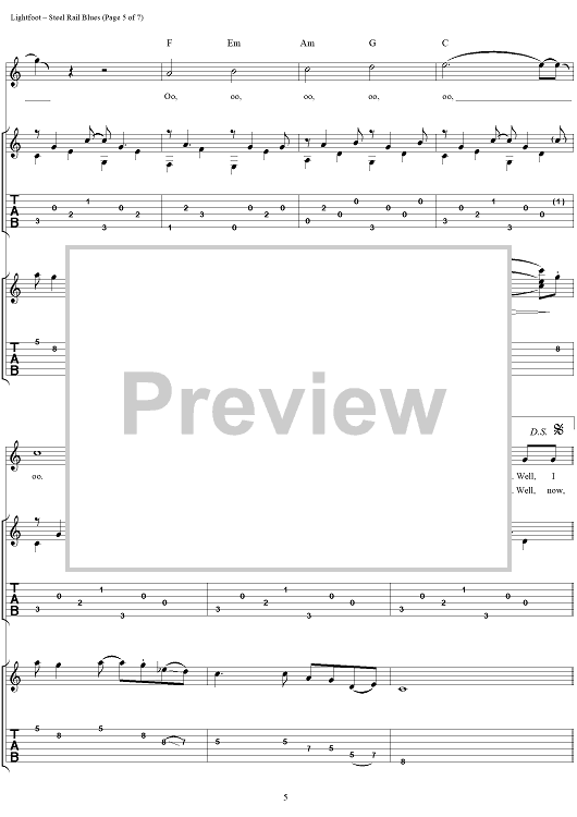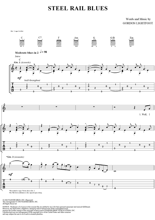 Digital Sheet Music for Steel Rail Blues by Gordon Lightfoot scored for Guitar Tab/Vocal; id:119658