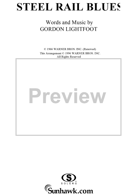 "Steel Rail Blues" Sheet Music by Gordon Lightfoot