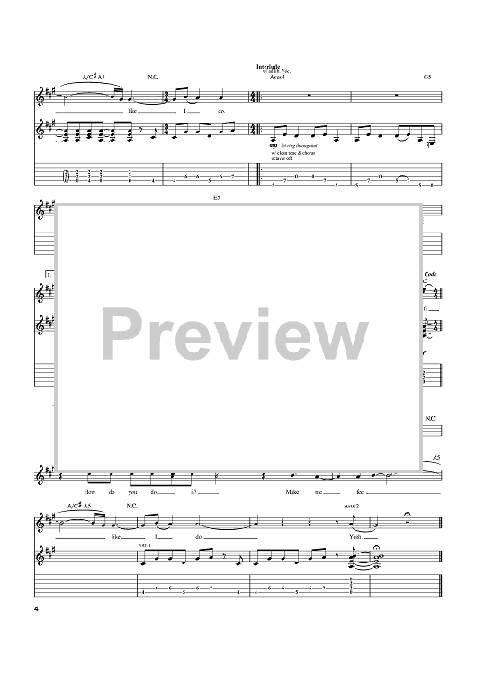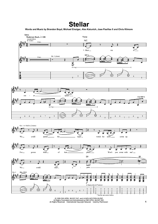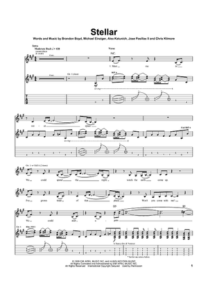 Digital Sheet Music for Stellar by Brandon Boyd, Mike Einziger, Incubus, Alex Katunich scored for Guitar Tab; id:370145