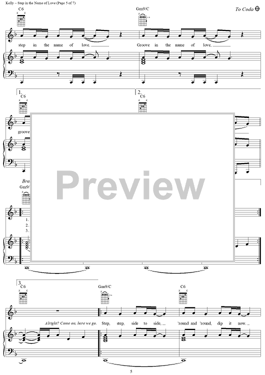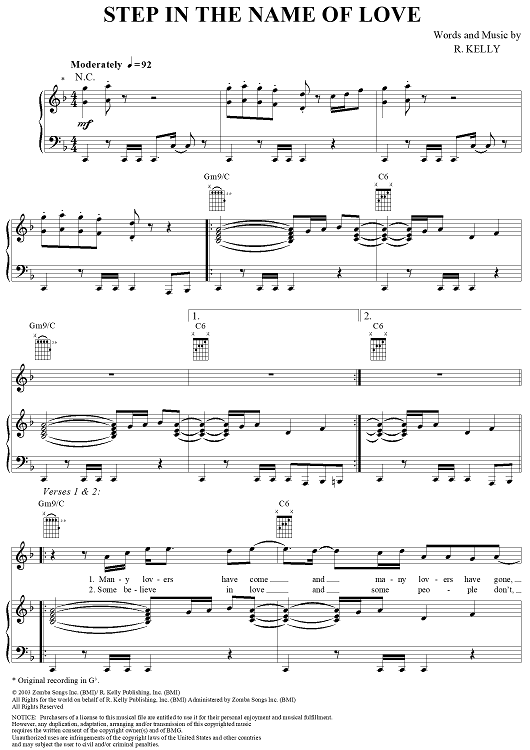 Digital Sheet Music for Step in the Name of Love by R. Kelly scored for Piano/Vocal/Chords; id:305238