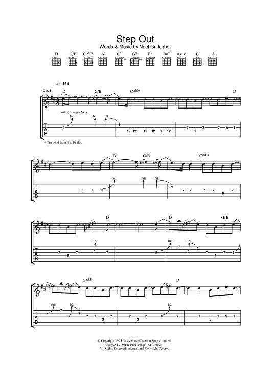 Digital Sheet Music for Step Out by Noel Gallagher, Oasis scored for Guitar Tab; id:385685