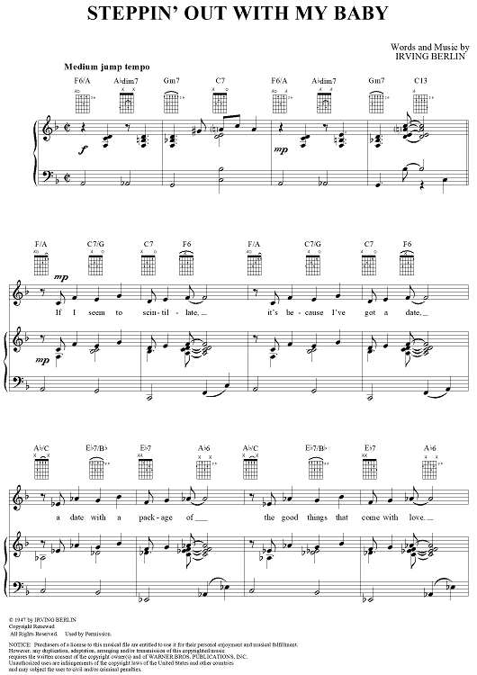 Digital Sheet Music for Steppin' Out with My Baby by Irving Berlin, Tony Bennett scored for Piano/Vocal/Chords; id:275387