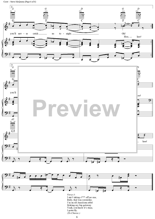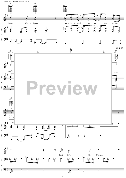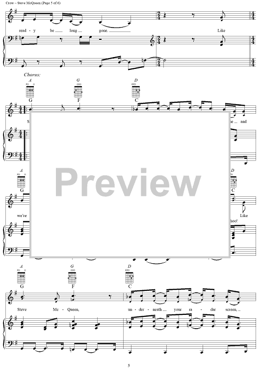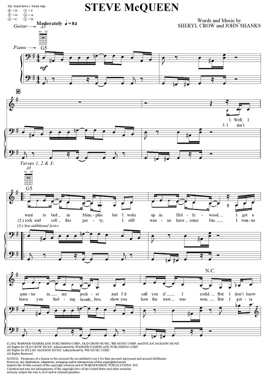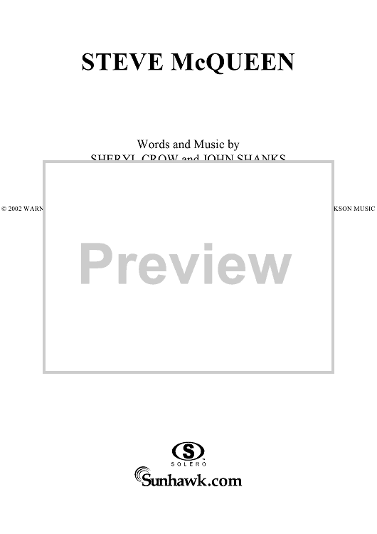 Digital Sheet Music for Steve McQueen by Sheryl Crow, John Shanks scored for Piano/Vocal/Chords; id:304312