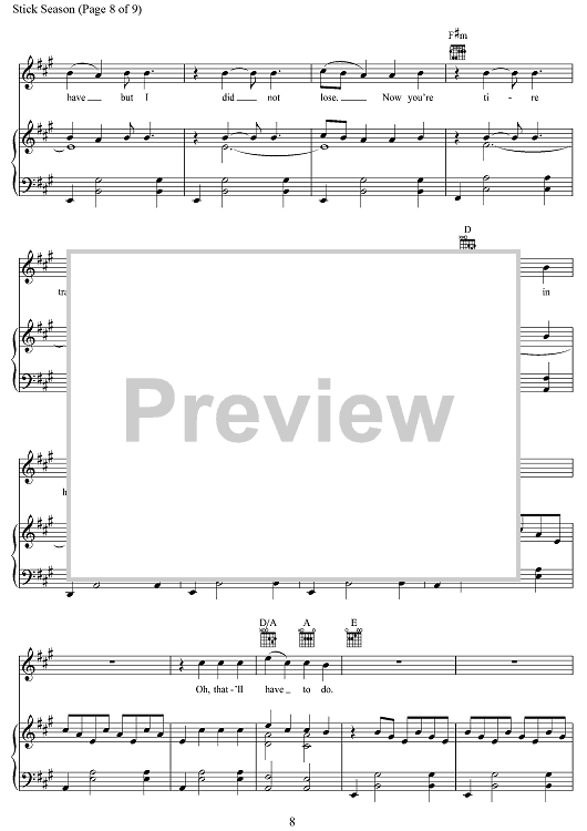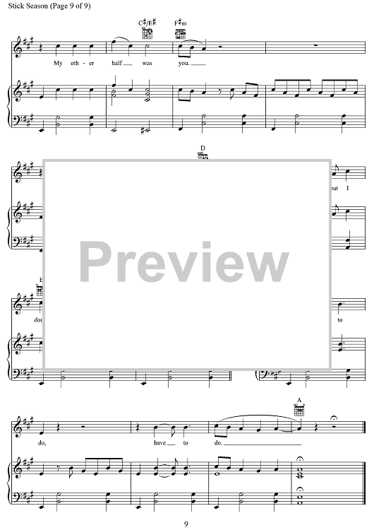 "Stick Season" Sheet Music by Noah Kahan