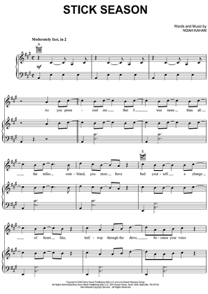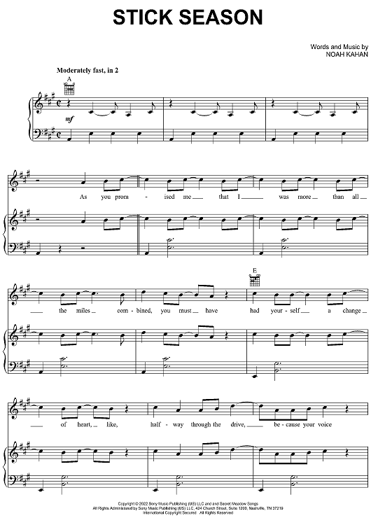 Digital Sheet Music for Stick Season by Noah Kahan scored for Piano/Vocal/Chords; id:501373