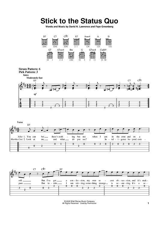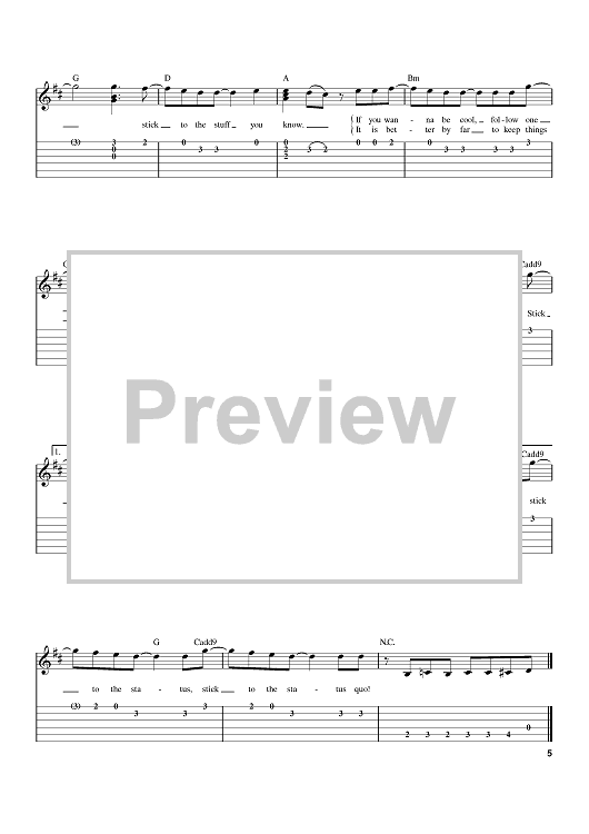 Digital Sheet Music for Stick To The Status Quo by David Lawrence, Faye Greenberg scored for Easy Guitar Tab; id:402255