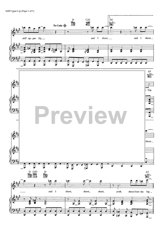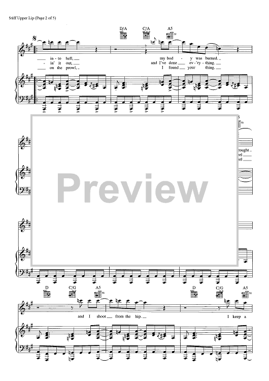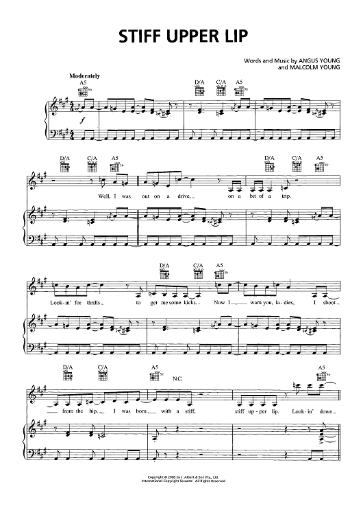 Digital Sheet Music for Stiff Upper Lip by AC/DC, Angus Young, Malcolm Young scored for Piano/Vocal/Chords; id:465986