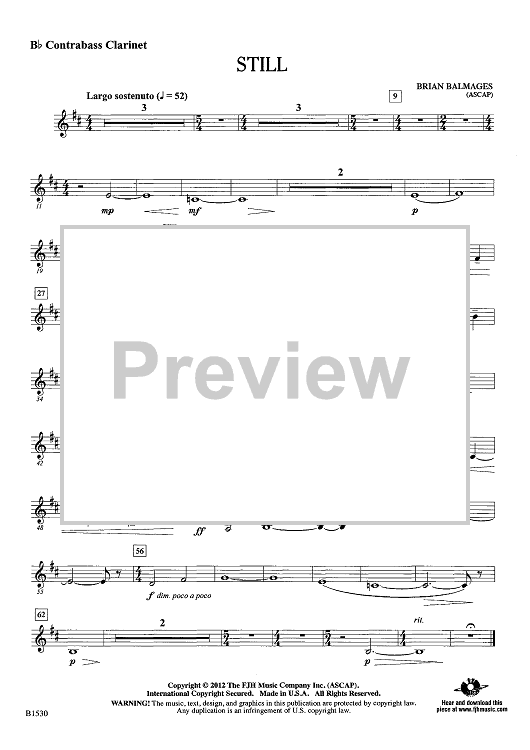 Digital Sheet Music for Still - Bb Contrabass Clarinet by Brian Balmages scored for Concert Band; id:438903