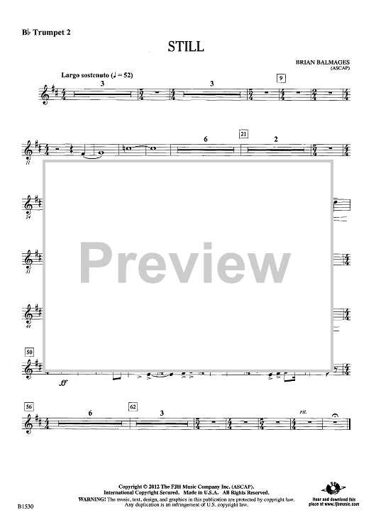 "Still - Bb Trumpet 2" Sheet Music by Brian Balmages