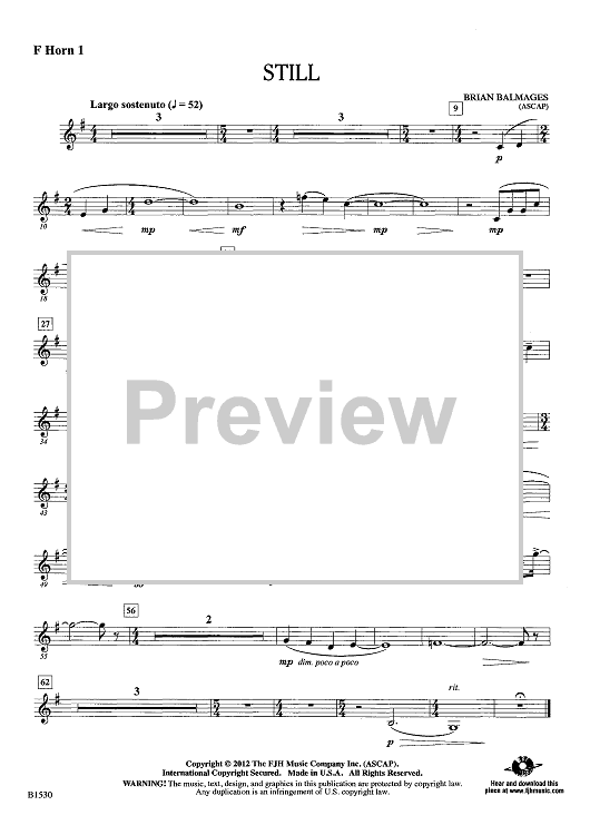 "Still - F Horn 1" Sheet Music by Brian Balmages