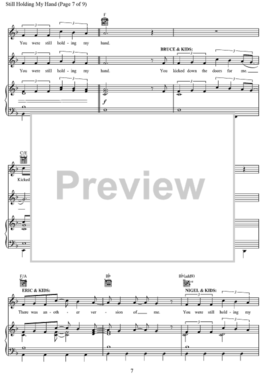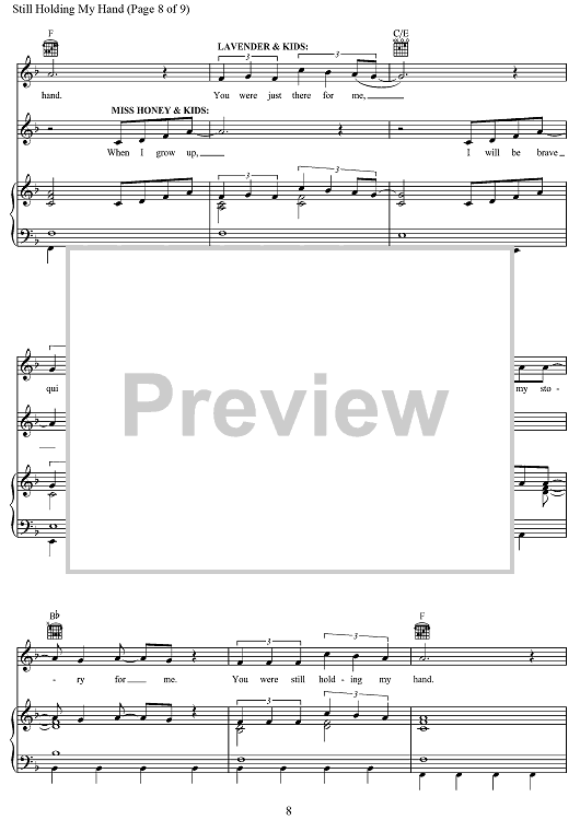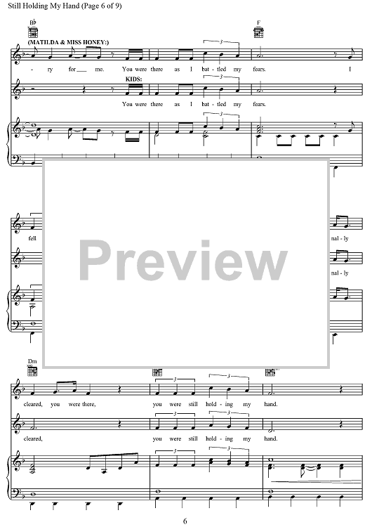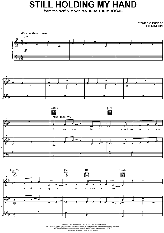 Digital Sheet Music for Still Holding My Hand - from Matilda the Musical by Tim Minchin scored for Piano/Vocal/Chords; id:498425