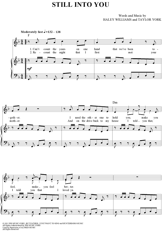 Digital Sheet Music for Still Into You by Hayley Williams, Paramore, Taylor York scored for Piano/Vocal/Chords; id:438029